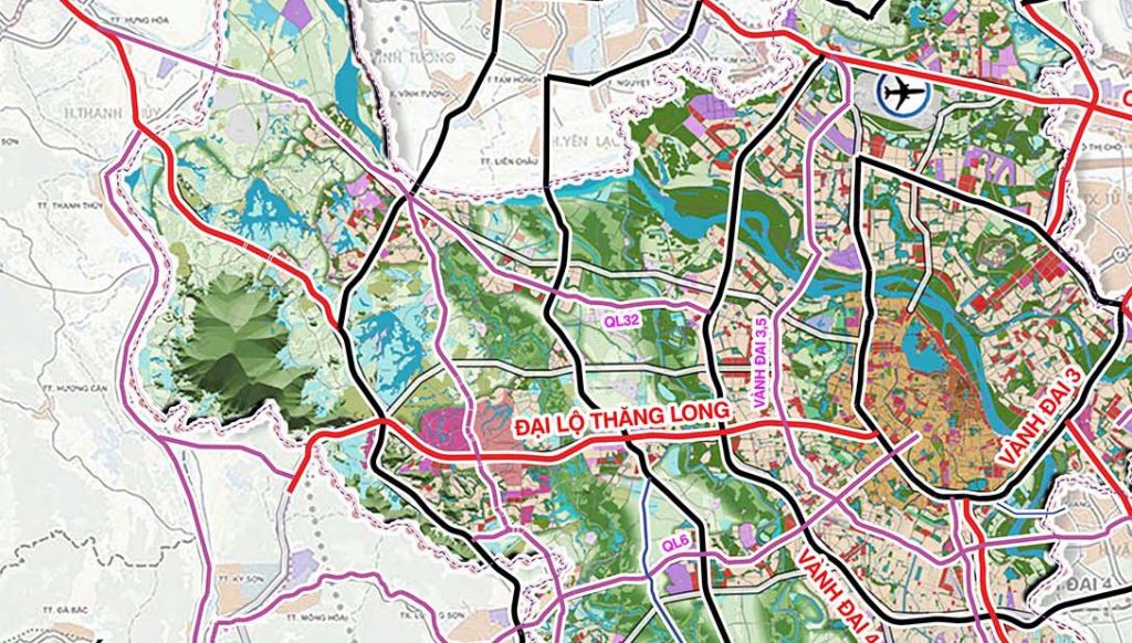 Về hình thái đô thị, bản vẽ QHTTTĐ chưa thể hiện được nội dung trong phần thuyết minh, ví dụ cụ thể trang 702: “Nghiêm cấm phát triển đô thị lan tỏa trên các tuyến hành lang giao thông kết nối đô thị trung tâm với đô thị vệ tinh” (Trích QHTTTĐ 2065 về phát triển đô thị lan toả dọc các trục đai lộ)