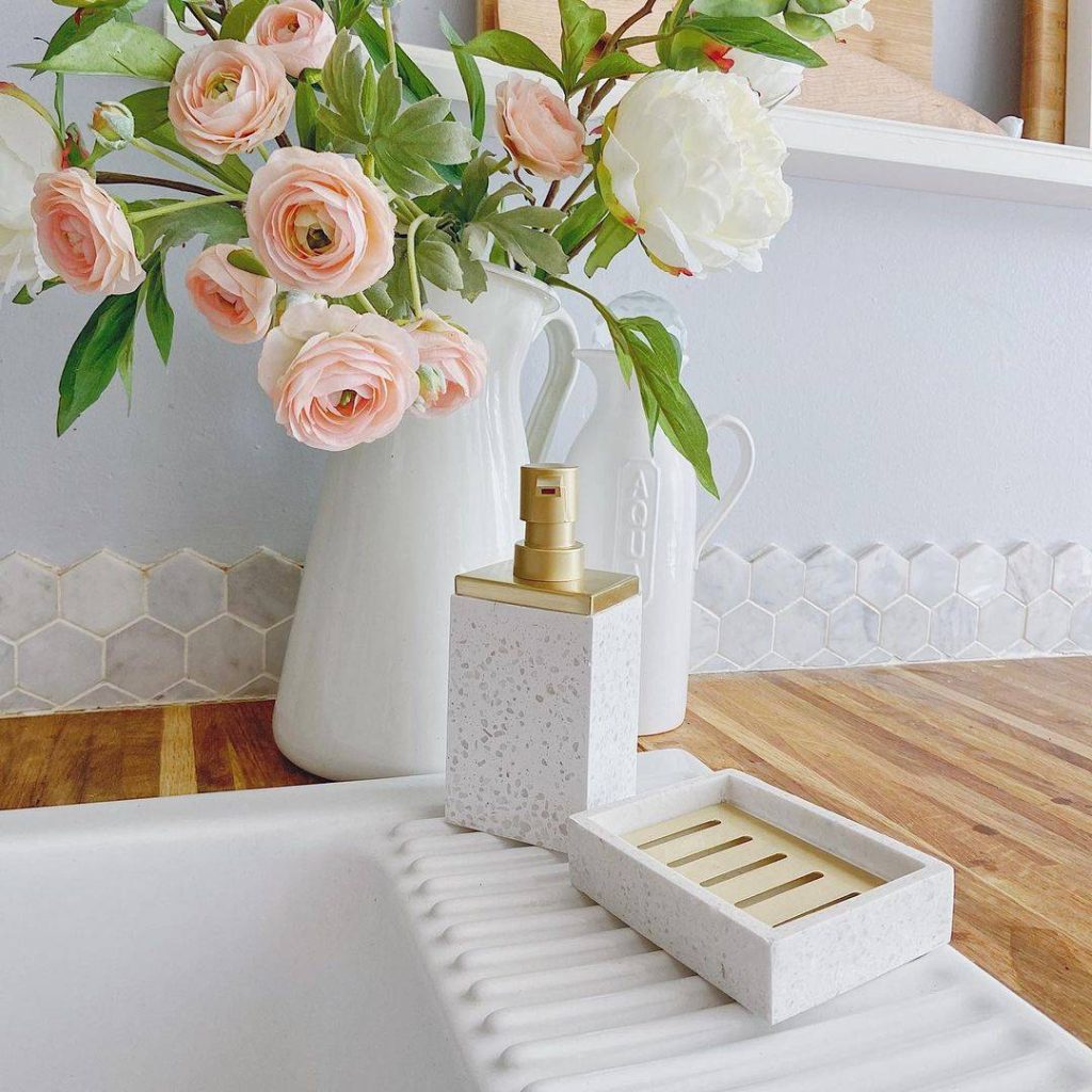 Khi nói đến vẻ đẹp trường tồn với thời gian, ý tưởng phòng tắm lát gạch lục giác là lựa chọn hoàn hảo nhất. Chúng trông thật tuyệt khi kết hợp với vật liệu tự nhiên và gỗ. Nhưng lại không hề mang lại vẻ ngoài quá thời thượng hay cầu kỳ. Nó làm bừng sáng căn phòng với nét thú vị tinh tế mà không hề phô trương như phòng tắm theo phong cách trang trại gọn gàng này .